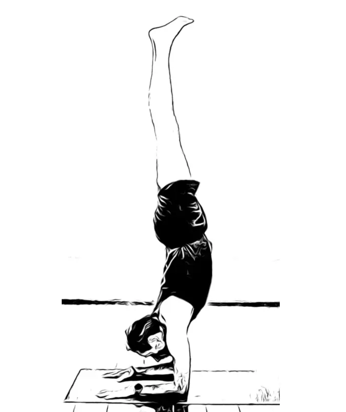Corrections possibles : Pratiquez la posture contre un mur pour éviter de tomber en arrière, placez una sangles entre les deuxcoudes et tenez une brique de yoga entre les deux mains...Montez le bassin, lancez une jambe au mur et l'autre en éloignant la tête du sol.